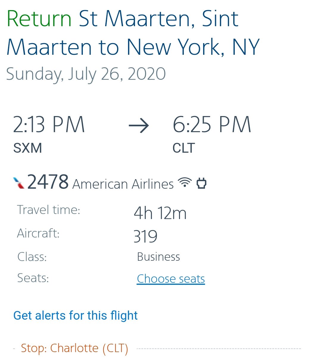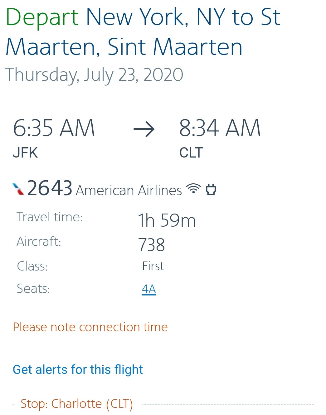 7月23日 9:15 (シャーロット) → 13:13 (セント・マーチン) アメリカン航空2478便