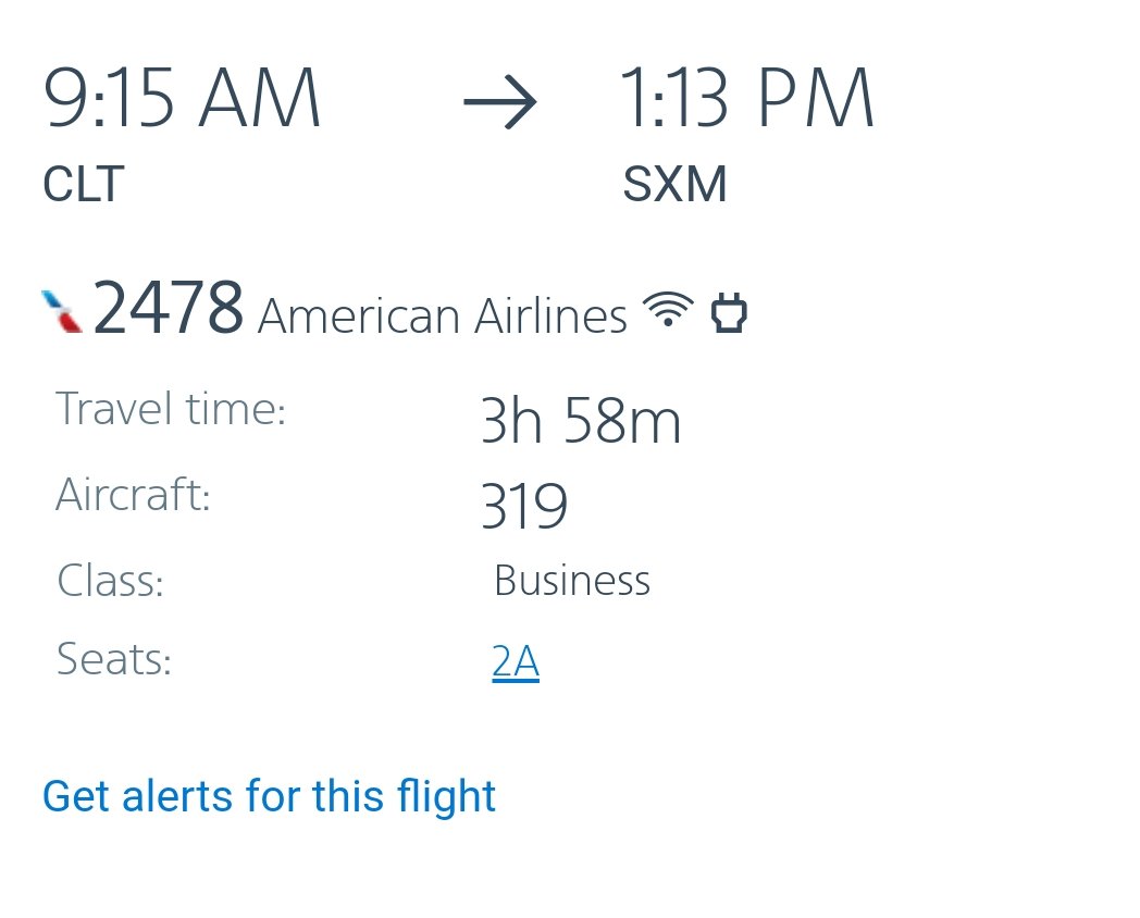 9:25 (シャーロット) → 13:17 (セント・マーチン) アメリカン航空2478便