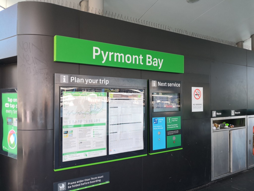 まったく迷うことなく、水上バス乗り場「Pyrmont Bay」に到着。