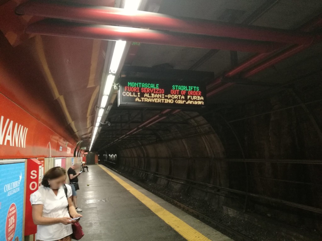 ローマの地下鉄のホームは薄暗く、治安の面であまりよろしくない感じです。