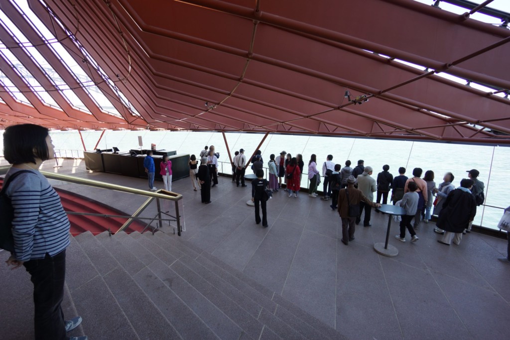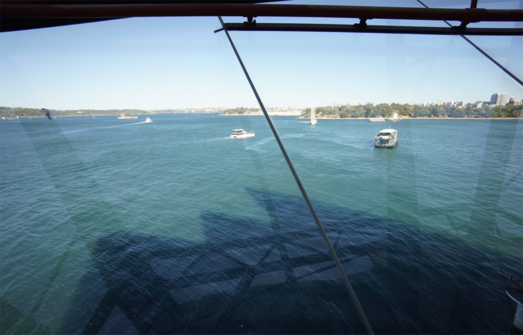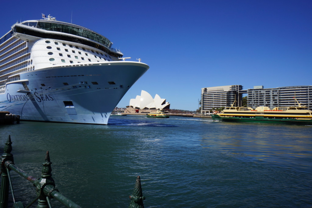 向こう岸には豪華客船とハーバーブリッジが見えます。