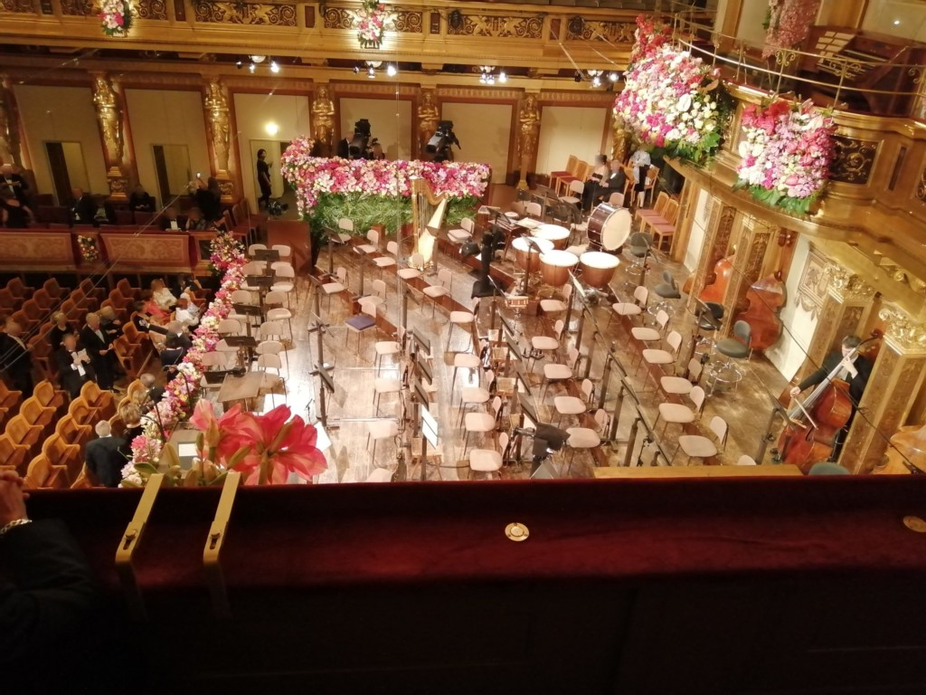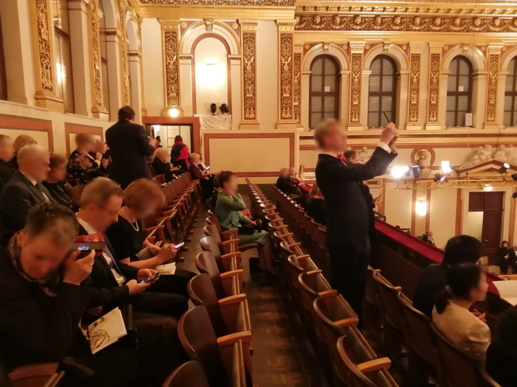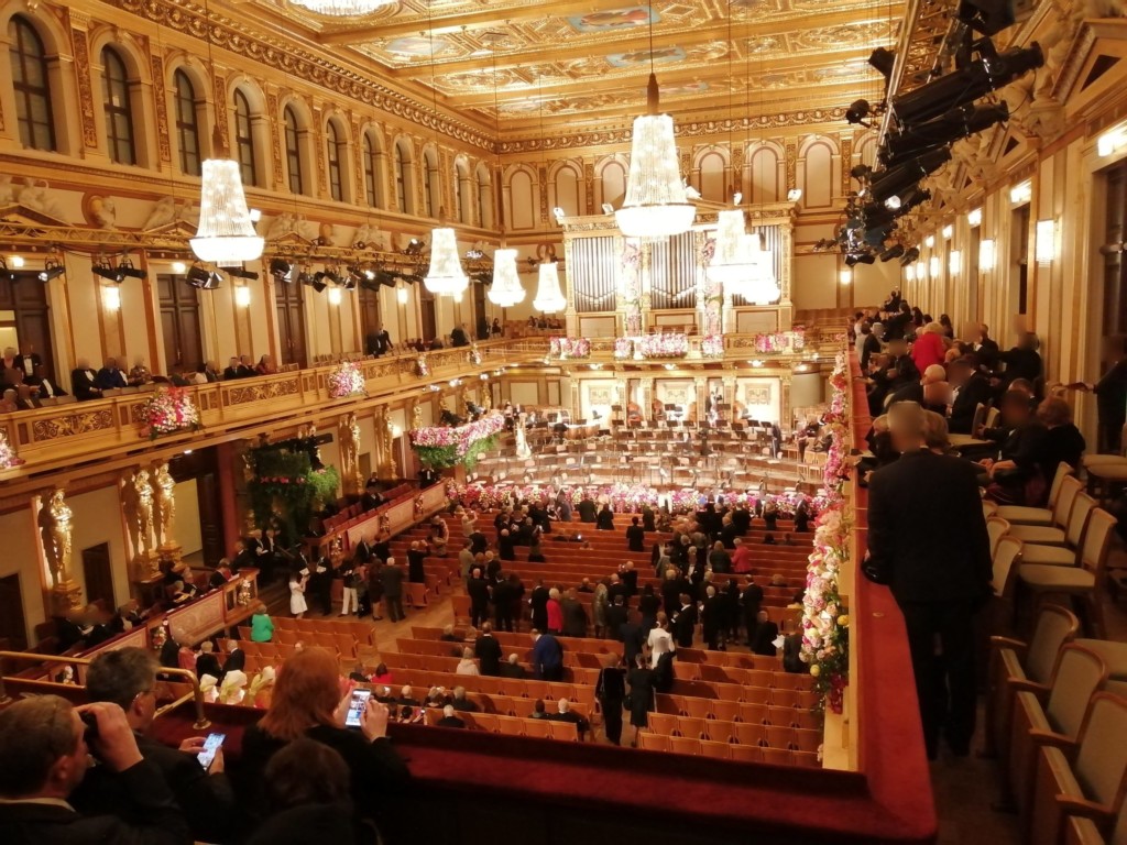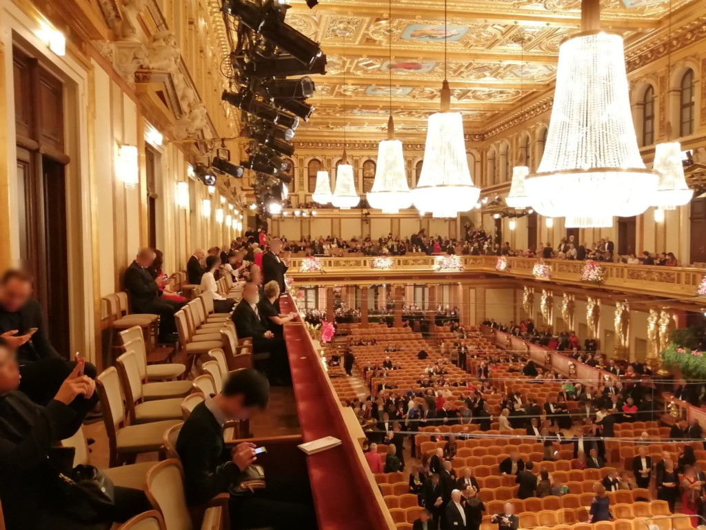 日本のクラシックコンサートではコートやかばんを持ったまま座席に座ってもOKですが、楽友協会のジルベスターコンサートではマナー違反です。