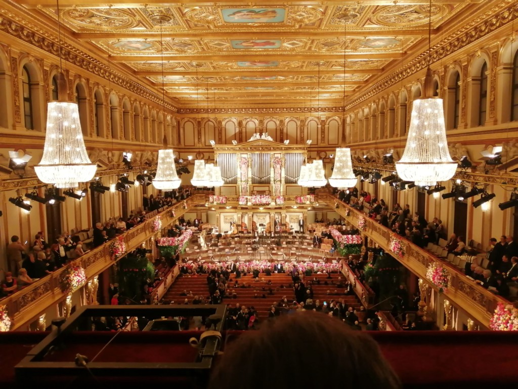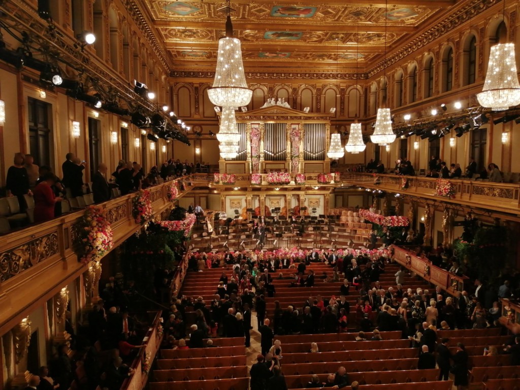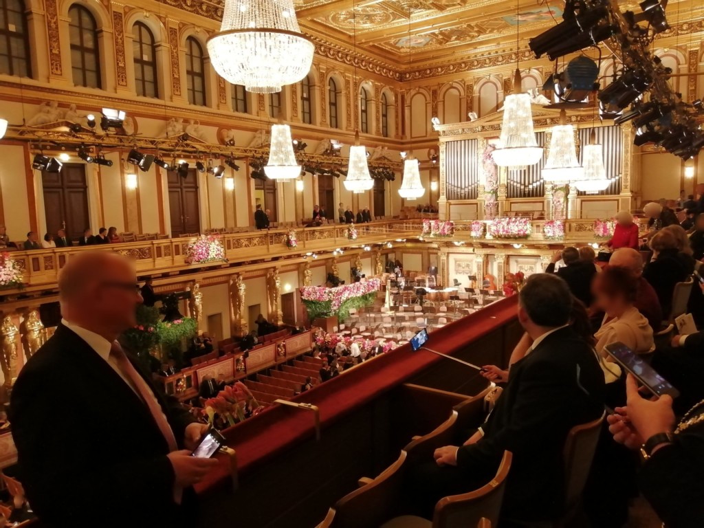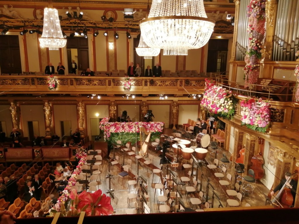 日本のクラシックコンサートではコートやかばんを持ったまま座席に座ってもOKですが、楽友協会のジルベスターコンサートではマナー違反です。