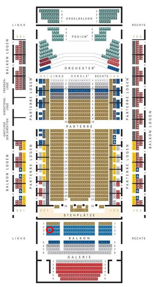 2階席右(balkon Logen)の最後方最後列。