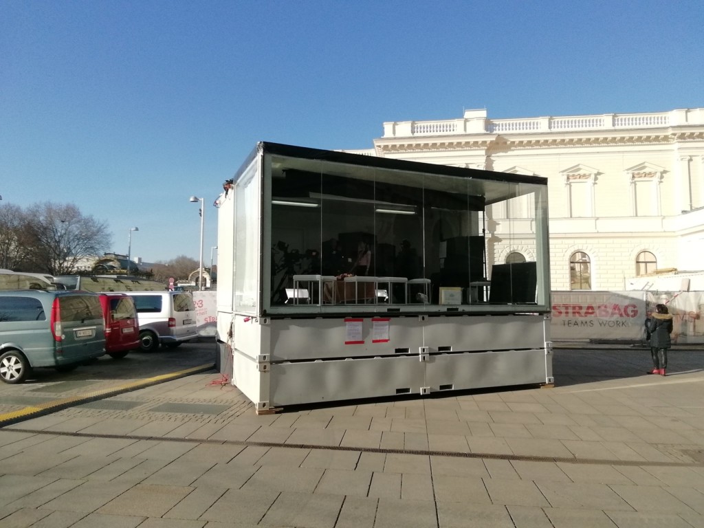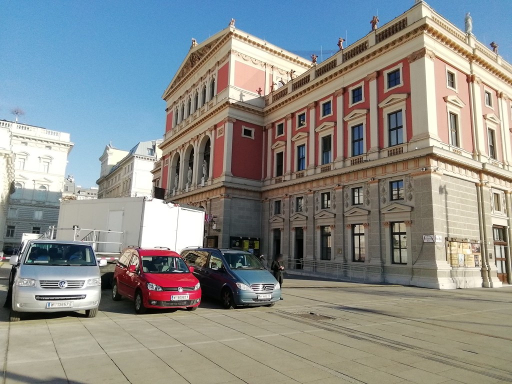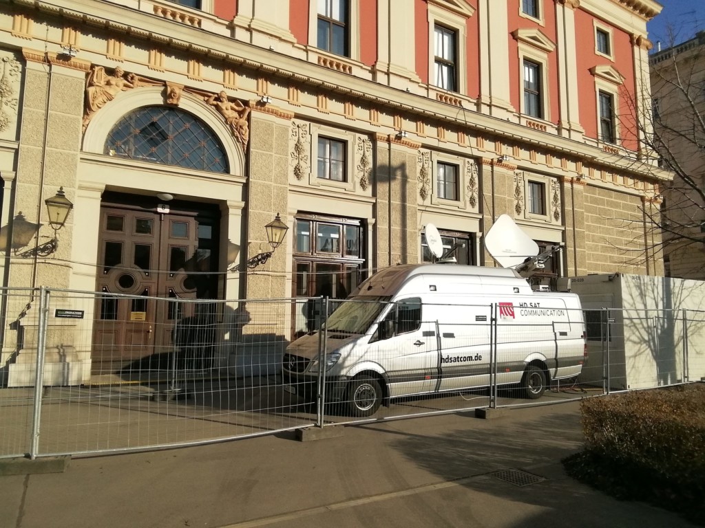 会場の横にはニューイヤーコンサートの中継車と思われる車両が停まっていました。