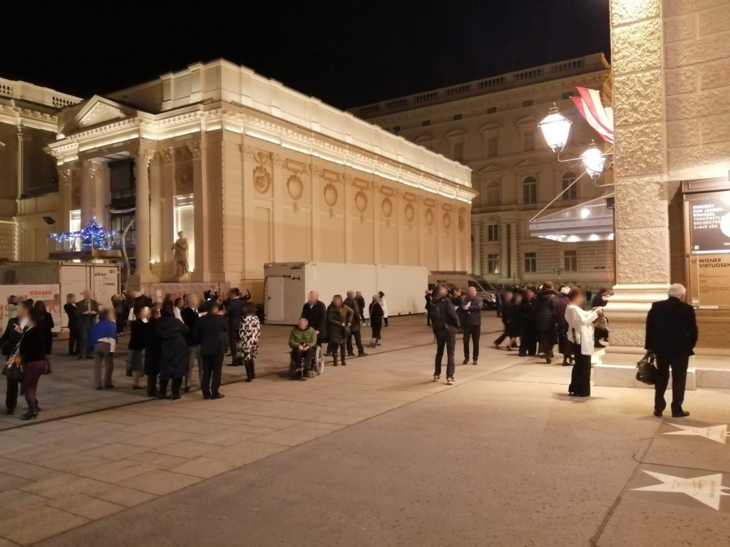 ジルベスターコンサートでは、各座席カテゴリー毎に入り口が決まっており、自分のチケットに記載の座席カテゴリーの入り口にいるスタッフにチケットを見せて先に進みます。