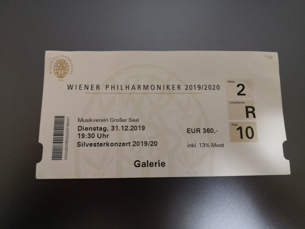 ジルベスターコンサートは、この座席カテゴリークラスでも正規料金で360EUR(約44,000円)もします。