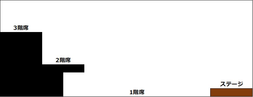 私のチケットは「3階席・2列目・右から10番目」になります。