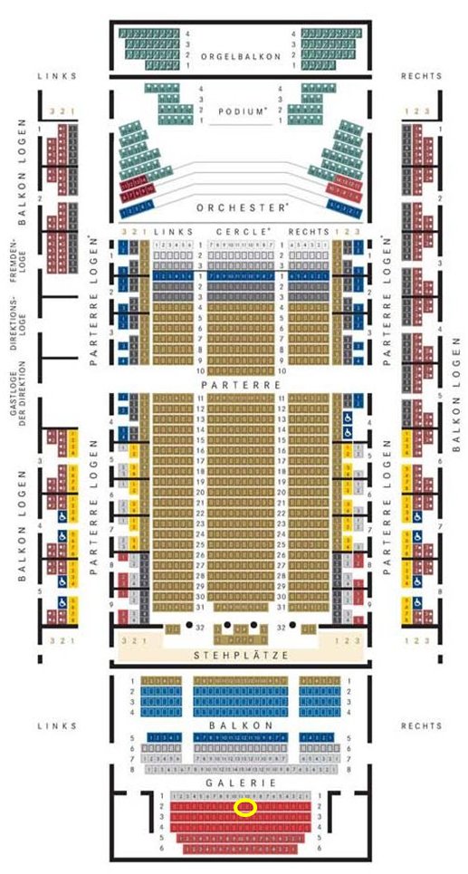 2階席右(balkon Logen)の後方最後列。