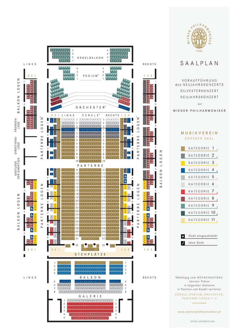 ニューイヤー専用の楽友協会の座席カテゴリー表です。