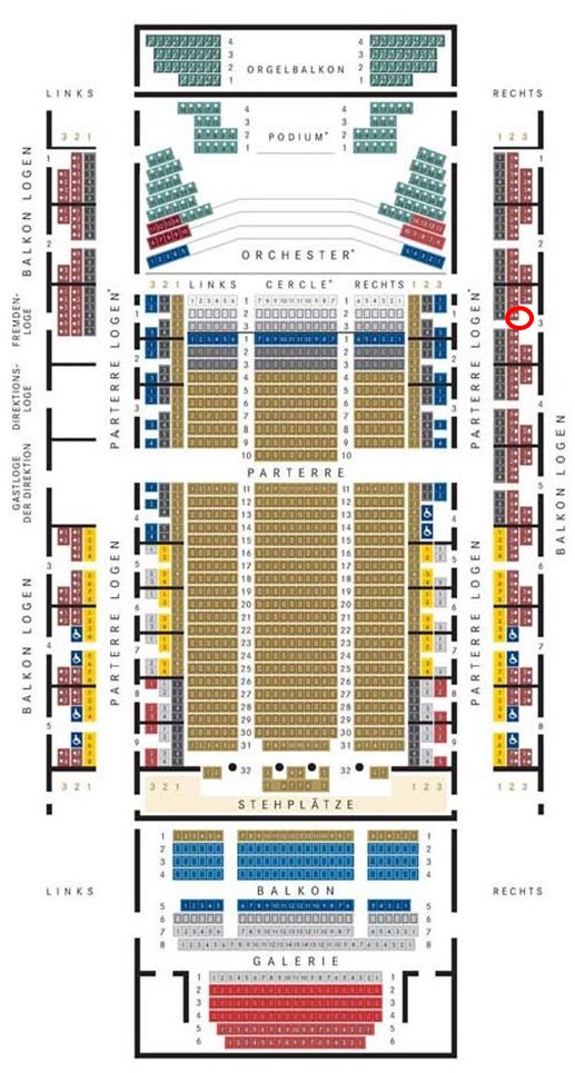 2階席右(balkon Logen)の前方ステージ横。