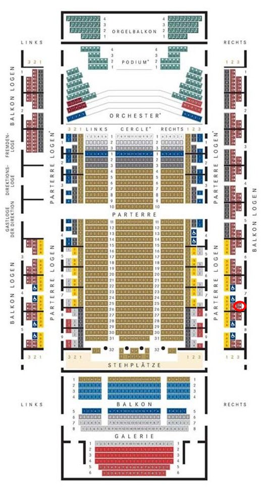 2階席右(balkon Logen)の後方最後列。