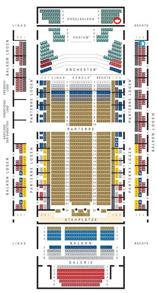 2階席右(balkon Logen)の最後方最後列。